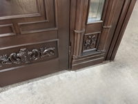Оформите заказ на стальная остекленная парадная дверь с массивом дуба, с капителью и с утонченной резьбой и декоративными элементами прямо сейчас и получите комплекс услуг с гарантией. Доступен подбор цвета по RAL или индивидуальный проект.
